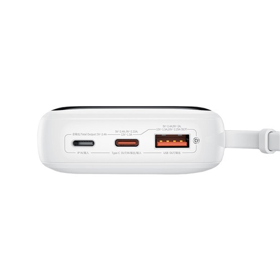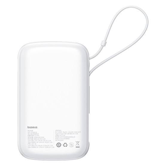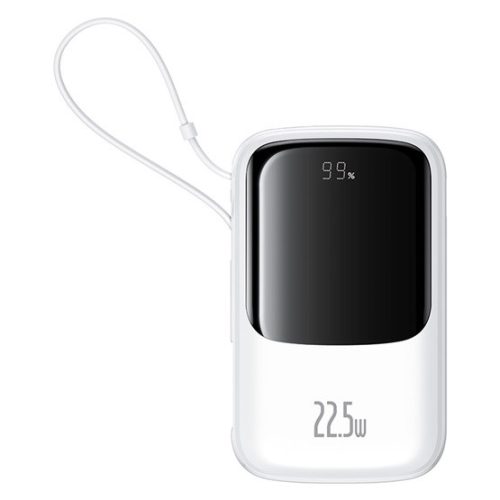 Baseus Qpow Pro+ gyorstöltő powerbank 10000 mAh, 22.5W, beépített USB Type-C kábel, fehér